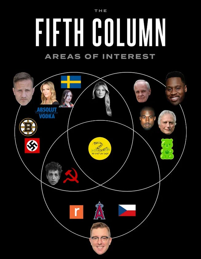 * Omnigraf o’ reactions to yesterday from past Fif’ guests: Tim Mak (#170), “Why Zelenskyy Stood Up to Trump-Vance”; Rep. Thomas Massie (#51), “Is this the end of Zelensky’s presidency? He hitched his wagon to Biden and the deep state. They lost and now he doesn’t seem to be playing his cards well”; Noah Rothman (#119 & #167), “This Is Not a TV Show”; Rep. Dan Crenshaw (#476), “If you are the leader of a country in a dire situation with no path to peace without American support, do not come into the Oval Office and argue with the President of the United States in public”; Jonah Goldberg (#182), “Dishonor and Incompetence to the Oval Office”; Vivek Ramaswamy (#411), “Modern-day peace through strength”; Jamie Kirchick (#55, #347 & #394), “an utter disgrace”; Glenn Greenwald (#183, #197, #211), “Just spend a few years reading about basic history and being silent until coming back to opine on things about which you know nothing”; David French (#191, #325, #365), “utterly shameful. This is Vladimir Putin's best outcome. The U.S. is placing pressure on a free nation fighting for its life while giving aid and comfort to an authoritarian thug”; Batya Ungar-Sargon (#451), “It's actually Trump standing up for the used and abused American taxpayer. Trump can't stand that our generosity is being used against us to prolong a war most Americans don't believe in”; Jessica Tarlov (#110), “Guess Trump and Vance really don’t know who’s an ally and who’s an enemy. Should have that kind of energy for Putin”; Michael Tracey (#105), “Zelensky’s White House Meltdown”; Conor Friedersdorf (#165, #186), “A lot of people know deep down that the Trump Admin is behaving shamefully with regard to Ukraine, but don't want to admit, even to themselves, that America is being dishonorable, so they fixate on matters of no consequence, like Zelensky's manners, to distract their consciences”; Matt Taibbi (#226, #348), “Zelensky plays Triumph the Insult Comic Dog in an unforgettably obnoxious White House visit, all but assuring an end to U.S. aid.”
