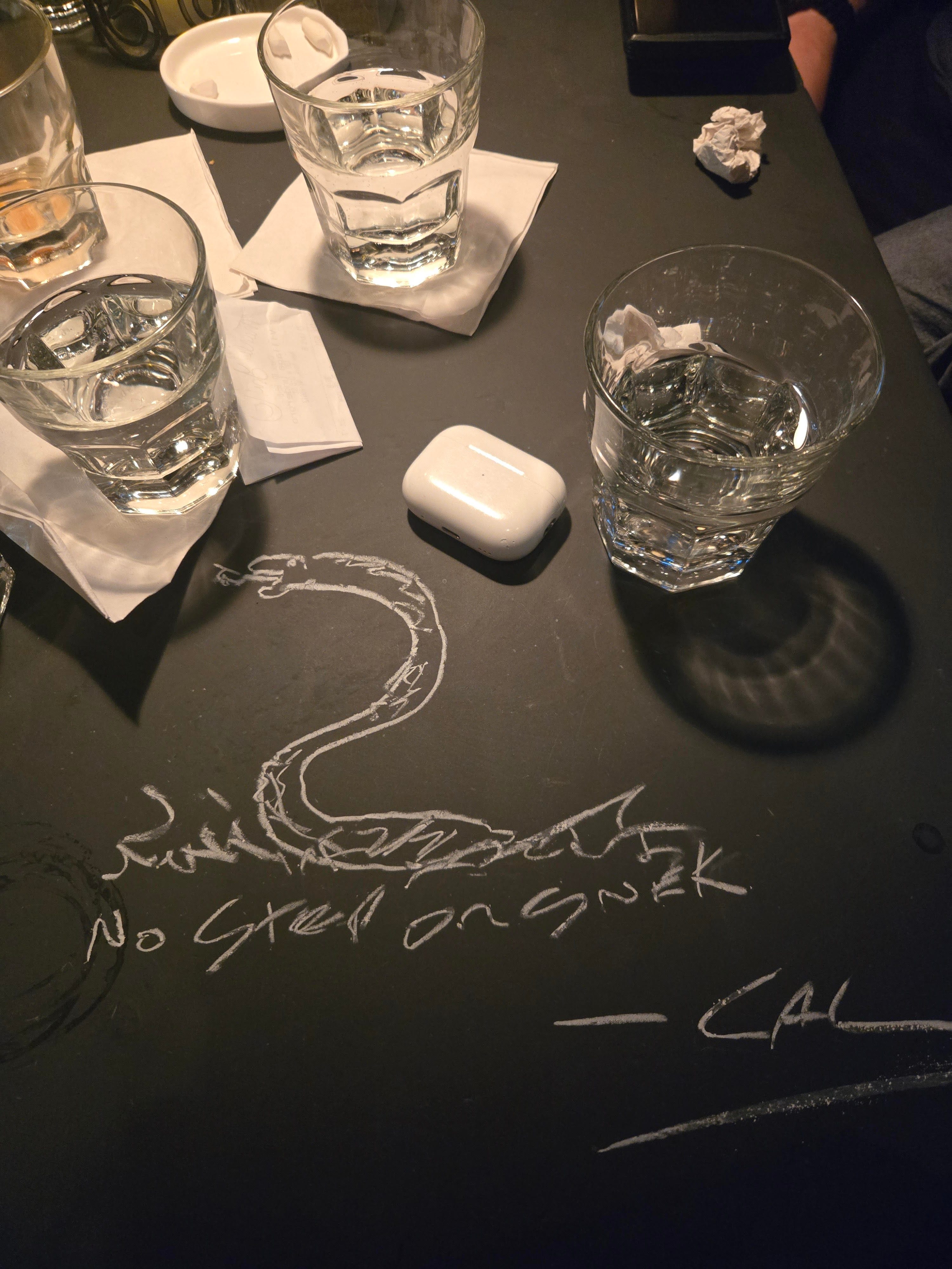 * Do we show all visiting listeners a good time? Certainly not, given our own hectic schedules and general unreliability. But the NYC Fifdom contingent is Aaron Judge-strong, and enough advanced pestering can get you invited to various public & semi-public events of note. So it was that listener Cal W. was for the past week Aussie-land’s very own Crawling King Snek: