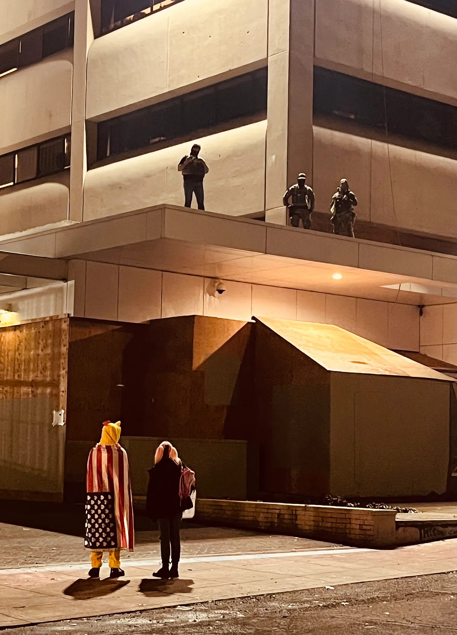 Since then, 200 Oregon National Guard troops were deployed, the scraggly daily protests swelled to match, there were some made-for-the-TV micro-scuffles, counter-protesters arrived on the scene with American flags and Charlie Kirk shirts, there was a little tear gas spilled here and there (including in Nancy Rommelmann’s eyeballs), then on Saturday U.S. District Court Judge Karin Immergut issued a temporary restraining order telling Trump to get bent. “This is a nation of constitutional law, not martial law,” Immergut wrote. “The President’s determination [that federal troops were required to enforce federal law] was simply untethered to the facts.”