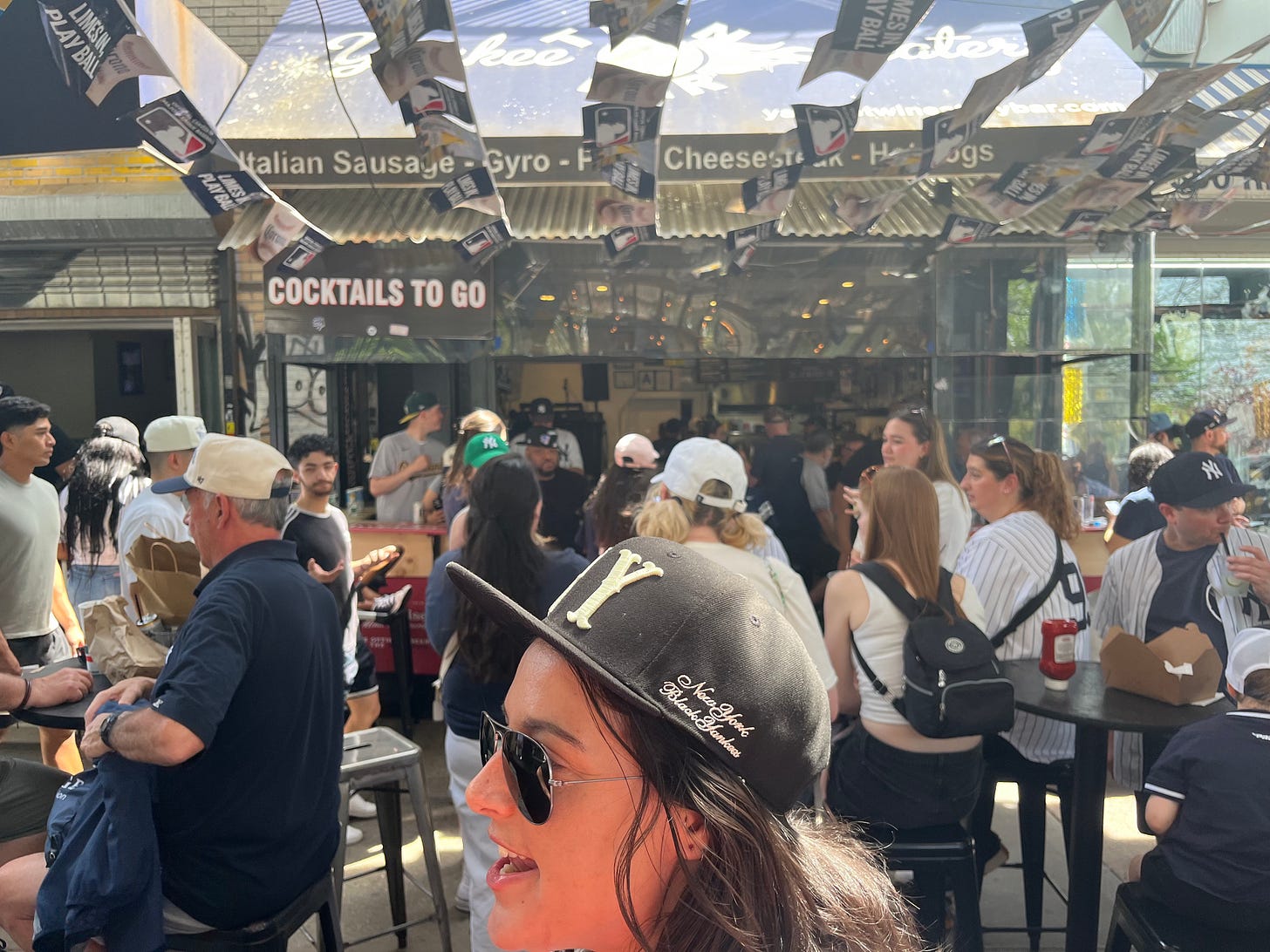 * Speaking of baseball and bad life choices, what a glorious time we had at Yankee Stadium Thursday afternoon, when beloved listeners Jaye, MAGA Mary, Nancy Rommelmann and I played hooky in the boozy sunshine to watch the Angels body-slam the Bombers. It struck me then as now that as a general proposition, all “businessman’s specials,” as weekday day-games used to be called, should be de facto Fifdom meetup situations all over this great land. I’m sure you people have a baseball WhatsApp group or whatever; figure it out. And invite me.
