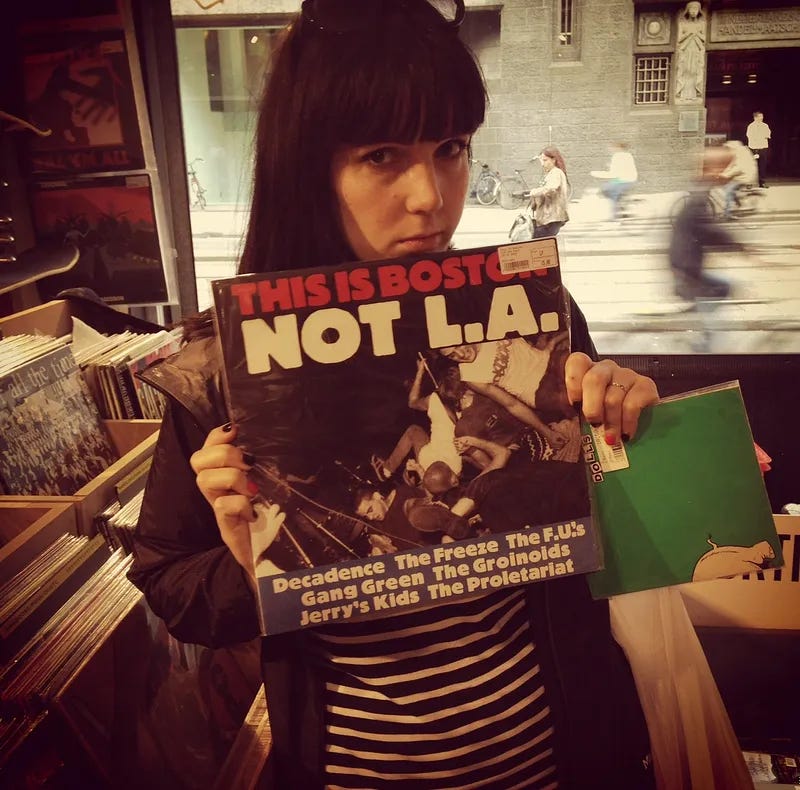 But the best were the pictures. First up, Fresca in Amsterdam 11 years ago, moodily flashing one of the obscure records we mentioned: