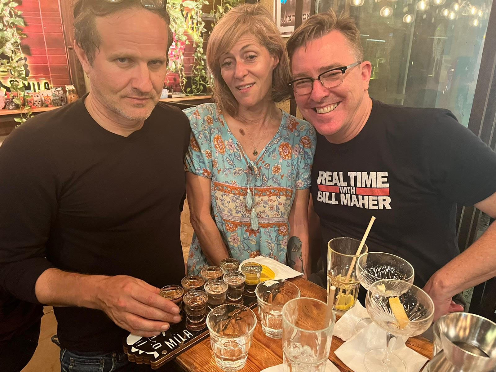 The sleepy-eyed gal in the middle at one Tel Aviv’s 40,000 bars is obviously our very own Nancy Rommelmann, who was so shy about chronicling a part of the world that she (like many of us) had never visited, she produced a half-dozen posts about it so far: 0, 1, 2, 3, 4, 5/6. From the latter: