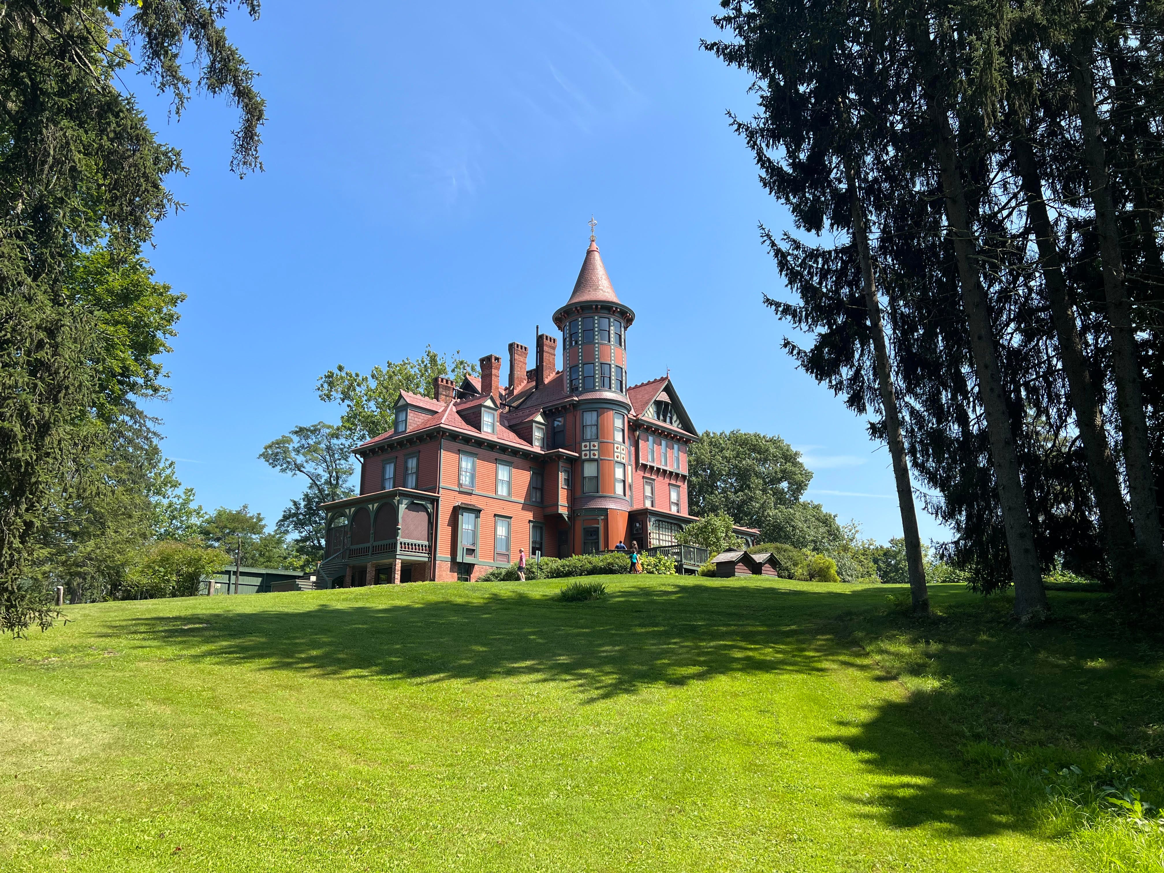 Hullo from the Hudson Valley, where basically every Hey, why don’t we drive down THIS street? leads to a scene like this, or at least seems to. The reddish manse in question is, like so many places around these parts, a place where Franklin Delano Roosevelt probably made some sexytime with a galpal…. Or, in the more decorous words of the brochures, where he enjoyed his “extraordinary friendship” with “confidante” (and distant cousin, natch), Margaret “Daisy” Stuckley. Guess I’ll have to watch this Bill Murray movie after all!