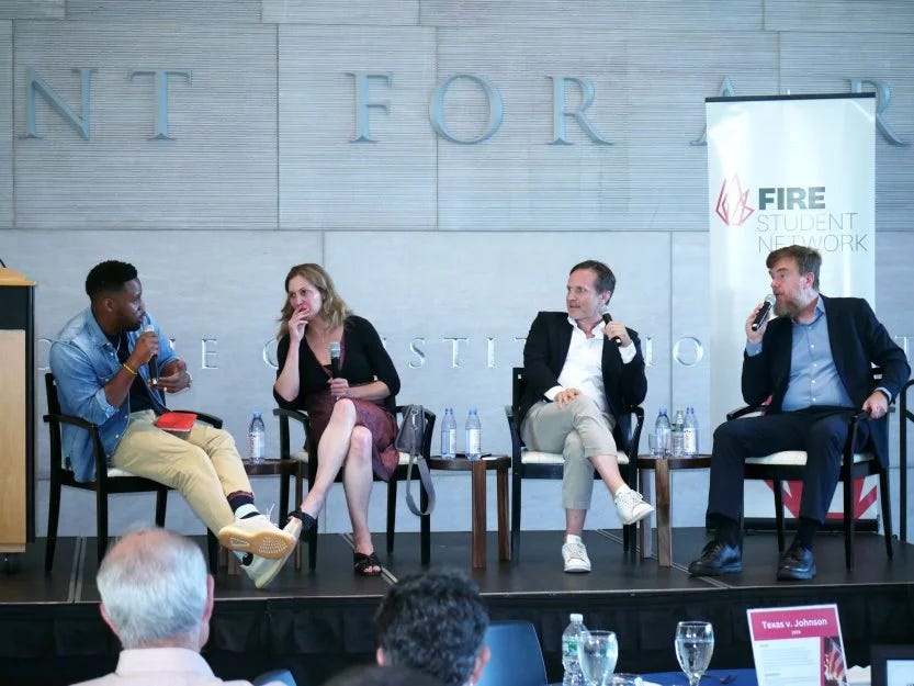 FIRE was excited to host “Fifth Column” podcasters Michael Moynihan, former national correspondent for Vice News, and Kmele Foster, journalist and partner at Freethink, as keynote speakers for the conference. Joining them was Lara Bazelon, law professor at the University of San Francisco School of Law and outspoken advocate for due process rights. Lara was also the keynote speaker at last year’s summer conference where she received a standing ovation. Returning students and interns were thrilled to hear from her again.
